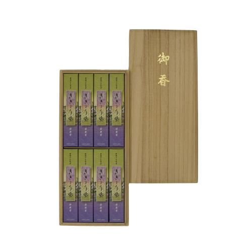 【全国優良仏壇専門店会オリジナル限定商品】 【香老舗 松栄堂】 京都の有名お線香メーカーの信頼あるトップブランドのご進物用お線香です。ご進物向けに桐箱に詰合せました。桐箱は格式を感じさせ、また湿気を吸ってくれるためお線香の保存にも適しております。 香り:桔梗の花をイメージした白檀をベースの穏やかでほどよい香り。 長さ:135mm(短寸・一般的な長さ) 煙の量:少ない