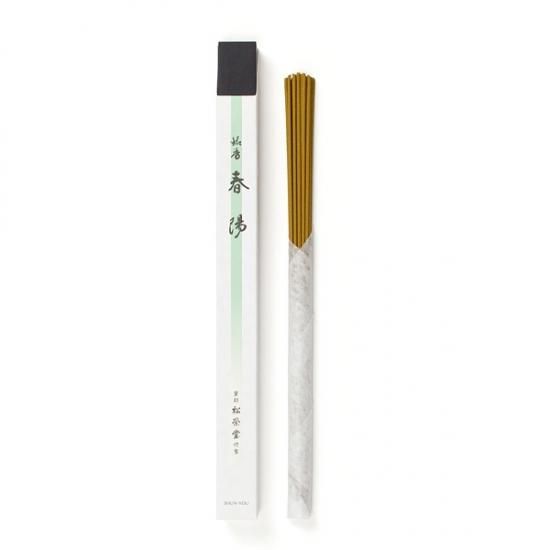 松栄堂の高級線香 春風を感じる清々しい香りにかすかな苦味を加えました。雅味あふれる香りをお届けします。線香長/250mm
